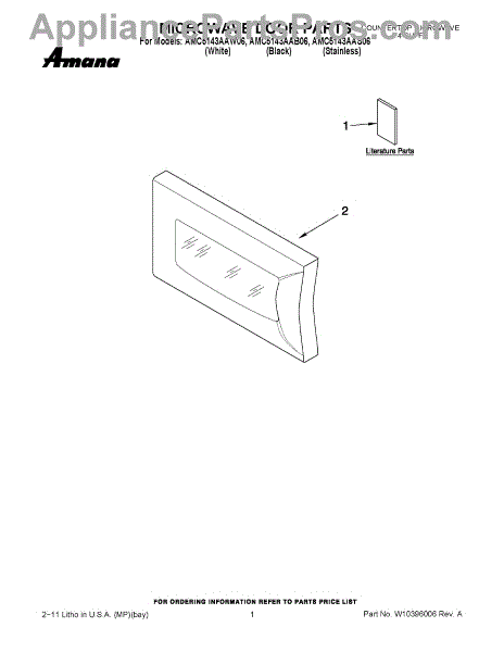 Parts for Amana AMC5143AAS06: 01 - Microwave Door Parts