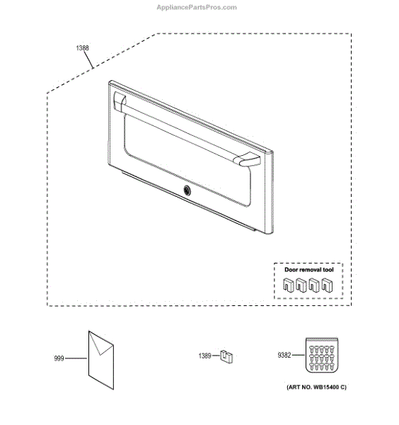 The Door Removal Tool is an OEM replacement part for GE microwave ovens. It is a specialized tool designed to assist in the safe and proper removal of the microwave door. This tool is essential for servicing, repairing, or replacing components within the microwave cavity, ensuring that the door can be securely detached and reattached without causing any damage.