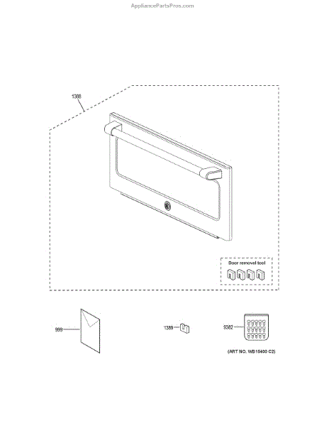 The Door Removal Tool is an OEM replacement part for GE microwave ovens. It is a specialized tool designed to assist in the safe and proper removal of the microwave door. This tool is essential for servicing, repairing, or replacing components within the microwave cavity, ensuring that the door can be securely detached and reattached without causing any damage.