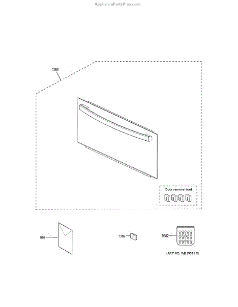 The Door Removal Tool is an OEM replacement part for GE microwave ovens. It is a specialized tool designed to assist in the safe and proper removal of the microwave door. This tool is essential for servicing, repairing, or replacing components within the microwave cavity, ensuring that the door can be securely detached and reattached without causing any damage.