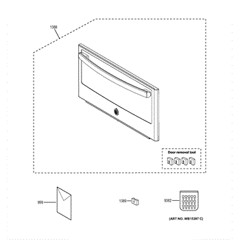 The Door Assembly is an OEM part for GE microwaves. It safely encloses the cooking cavity while allowing viewing of interior contents during operation.