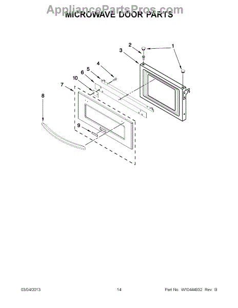 This replacement microwave door restores a secure seal and a clear view into the cavity. Replace a cracked, bent, or misaligned door to help the interlocks engage properly so the oven can start and operate safely.