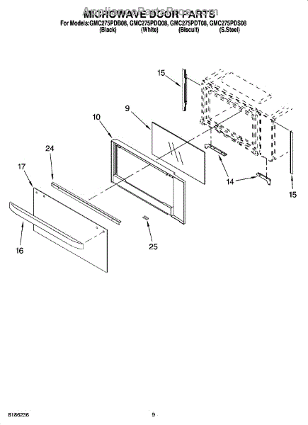Parts for Whirlpool GMC275PDQ08: 07 - Microwave Door Parts