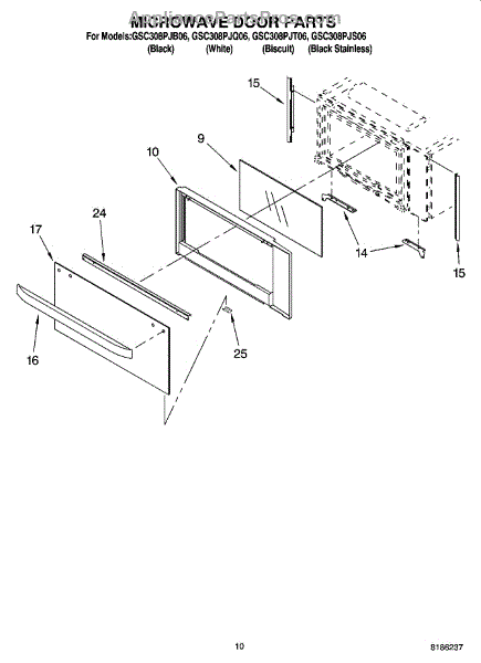 Parts for Whirlpool GSC308PJT06: 08 - Microwave Door Parts