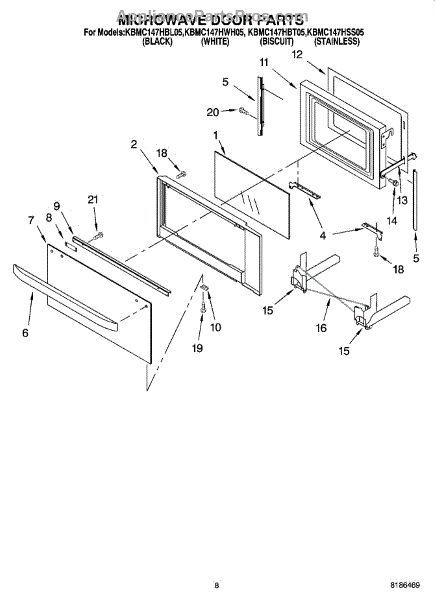 NOTE: FOR KEMC308KSS** STAINLESS MODELS, USE PART # WP4452396 FOR RIGHT SIDE AND PART # WP4452395 FOR LEFT SIDE.