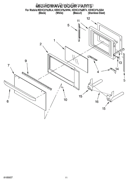 NOTE: FOR KEMC308KSS** STAINLESS MODELS, USE PART # WP4452396 FOR RIGHT SIDE AND PART # WP4452395 FOR LEFT SIDE.