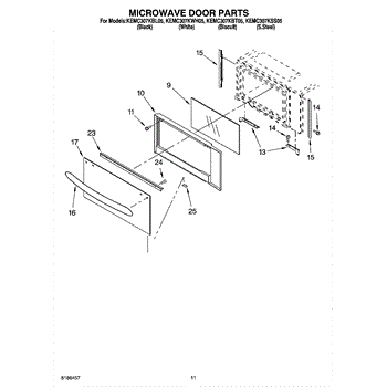 The Microwave Door Frame is an OEM replacement part for Whirlpool microwaves. As a key component of the microwave appliance, the door frame surrounds and supports the actual door. Causes of a bad microwave door frame include warping, cracks or breaks that compromise its supporting function. Over time and repeated use, the frame can become damaged or misshapen. Symptoms of a bad door frame include: