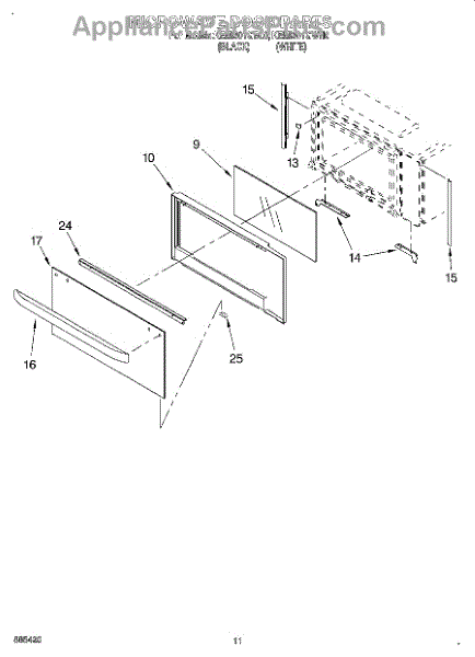 The Microwave Door Frame is an OEM replacement part for Whirlpool microwaves. As a key component of the microwave appliance, the door frame surrounds and supports the actual door. Causes of a bad microwave door frame include warping, cracks or breaks that compromise its supporting function. Over time and repeated use, the frame can become damaged or misshapen. Symptoms of a bad door frame include: