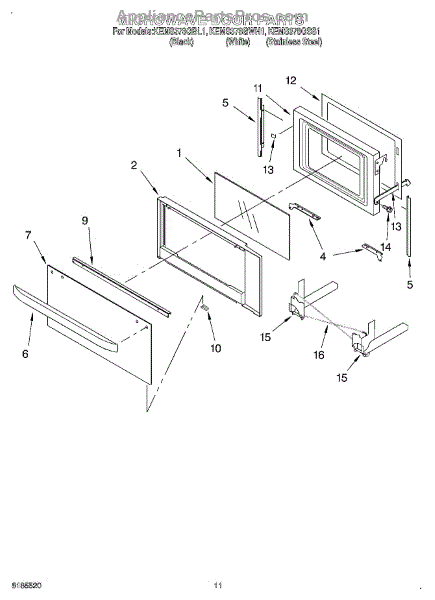 NOTE: FOR KEMC308KSS** STAINLESS MODELS, USE PART # WP4452396 FOR RIGHT SIDE AND PART # WP4452395 FOR LEFT SIDE.