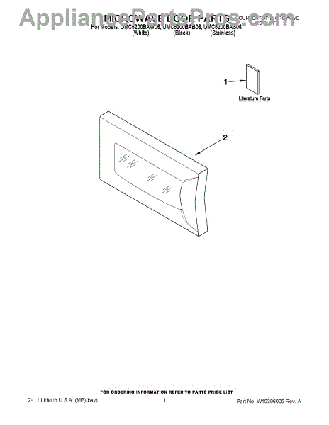 Parts for Whirlpool UMC5200BAW06: 01 - Microwave Door Parts