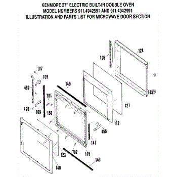 Parts for Kenmore 911.4942991 (9114942991, 911 4942991): Microwave Door Section Parts