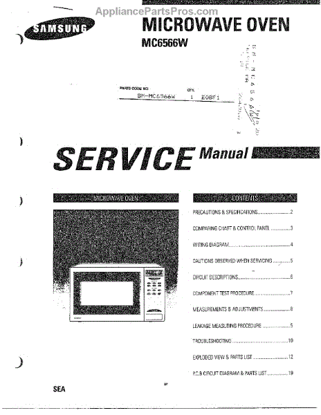 Parts for Samsung MC6566W/XAA: Microwave Oven / Contents Parts