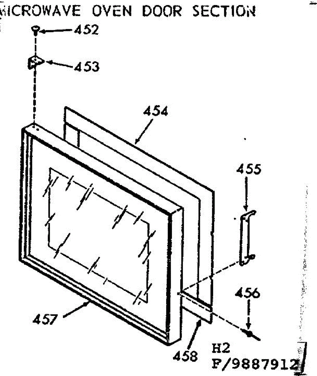 Parts for Kenmore 103.9887912 (1039887912, 103 9887912): Microwave Oven Door Section Parts