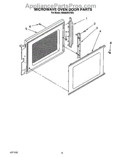 Parts for Whirlpool RM980PXYN0: 08 - Microwave Oven Door Parts