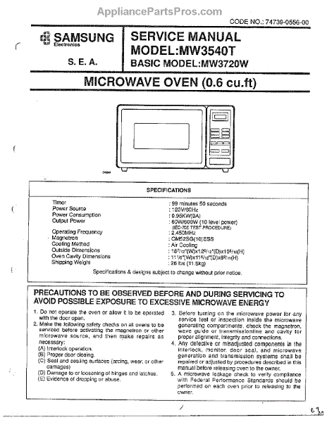 Parts for Samsung MW3540T/XAA: Microwave Oven Parts
