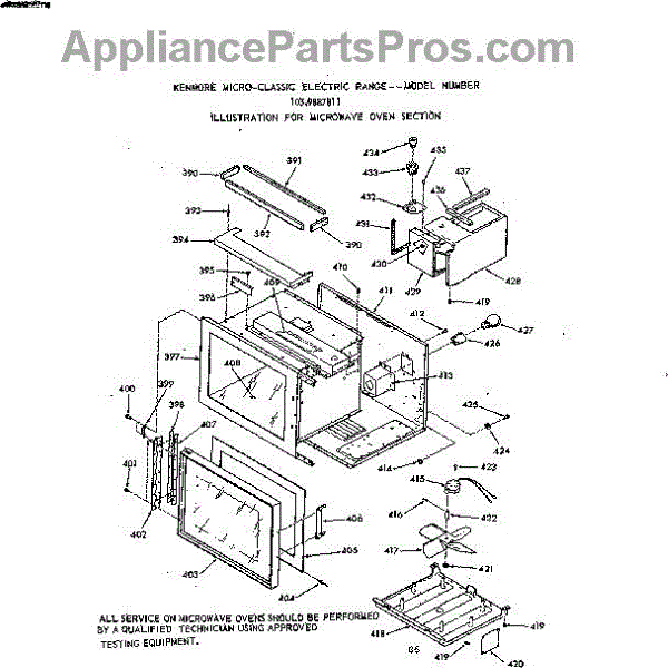 Parts for Kenmore 103.9887811 (1039887811, 103 9887811): Microwave Oven Section Parts