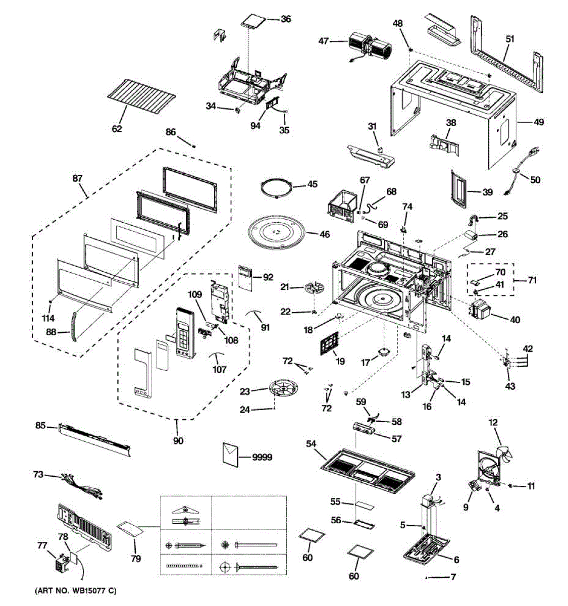 Secures microwave components and mounting brackets. Replace this hardware assembly if screws are stripped, bolts are missing, or fasteners are damaged.