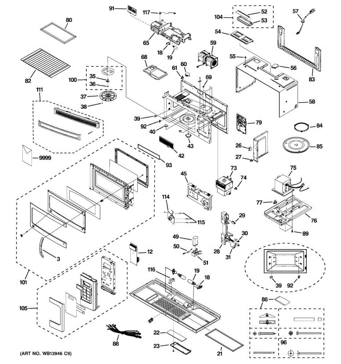 Fixes loud grinding or coffee grinder noise from microwave. Simple DIY repair with 2 screws and wire connectors. Located on top, typically takes under 30 minutes.
