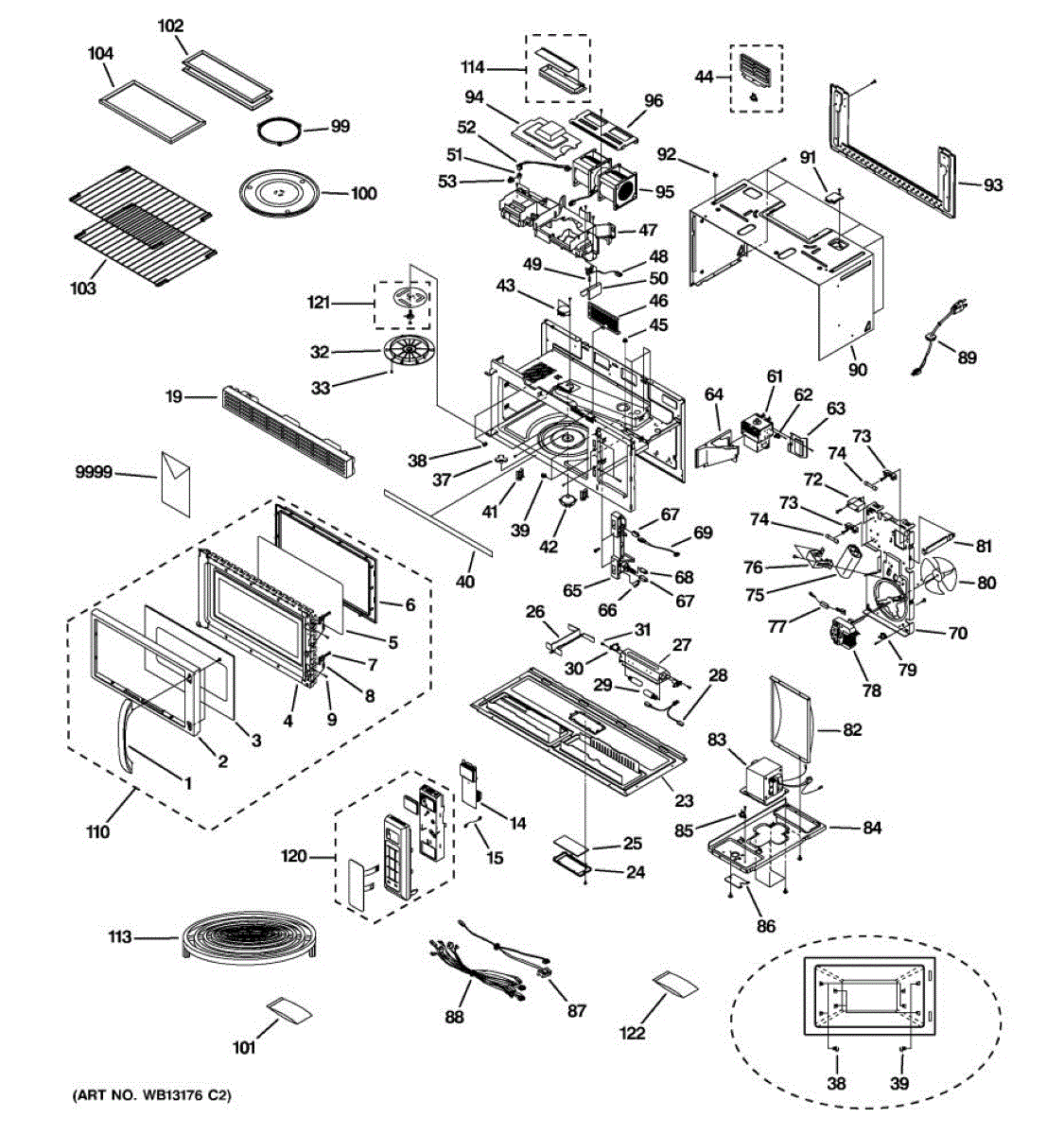 Fixes loud grinding or coffee grinder noise from microwave. Simple DIY repair with 2 screws and wire connectors. Located on top, typically takes under 30 minutes.
