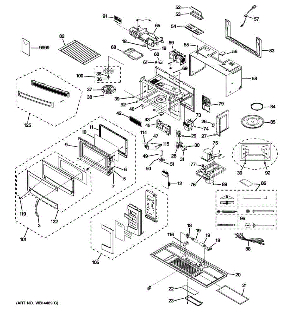 Complete microwave door assembly that includes the outer panel, inner liner, window, and handle. Replace if your door is cracked, warped, or damaged.