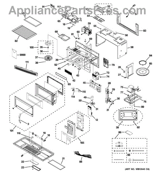 The Handle Assembly is an OEM replacement part for GE microwaves. This assembly includes a handle used for opening and closing the microwave door. A properly functioning handle assembly provides safe and easy access to the microwave interior for loading and unloading food items. Causes of a bad handle assembly can include damage from excess weight or stress on the handles during operation, cracks or breaks from normal usage over time, or issues affecting their usability. Symptoms of a bad handle assembly include:
