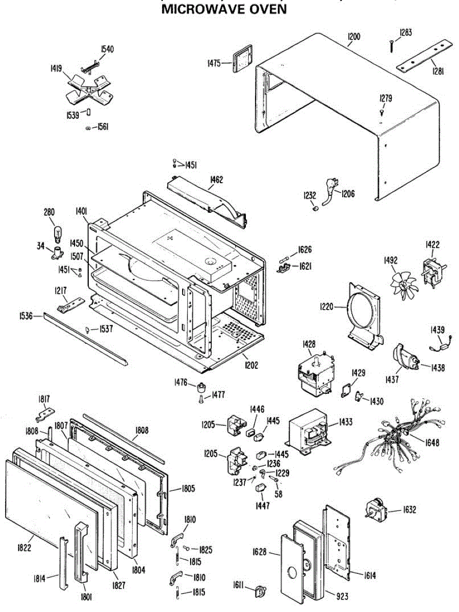 Parts for Ge JE42001: 01 - Microwave Oven Parts