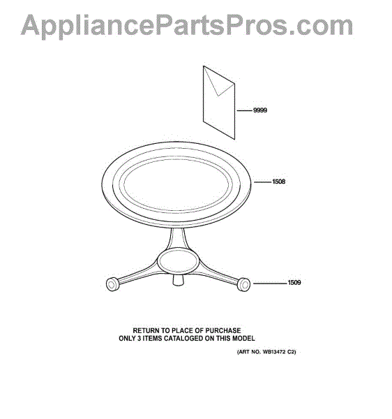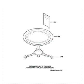 The Rotating Ring Assembly is an OEM replacement part for GE built-in microwave models. Located inside the cavity, it supports the glass turntable tray responsible for rotationally cooking food. Each prong of the assembly measures about 4-1/2 inches from the center.
