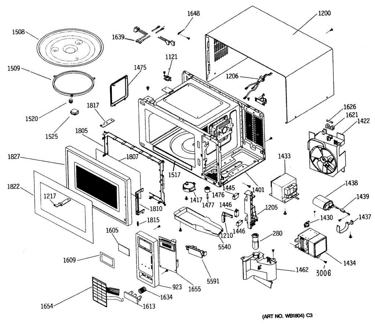 Washered screw secures panels, brackets, and internal microwave components. Replace if screw is missing, stripped, or damaged to restore proper fit.