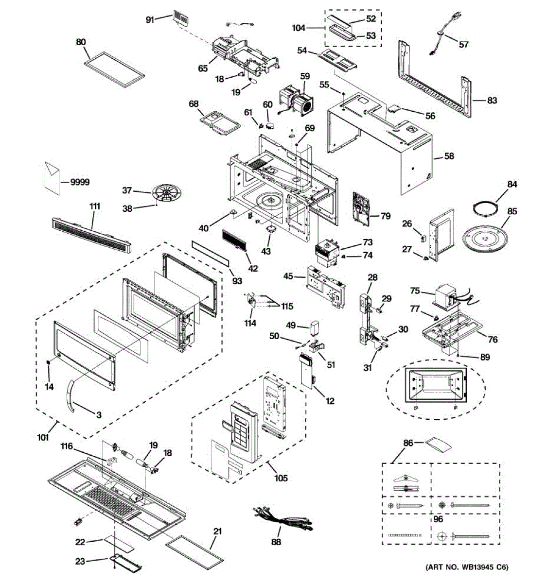 Fixes loud grinding or coffee grinder noise from microwave. Simple DIY repair with 2 screws and wire connectors. Located on top, typically takes under 30 minutes.