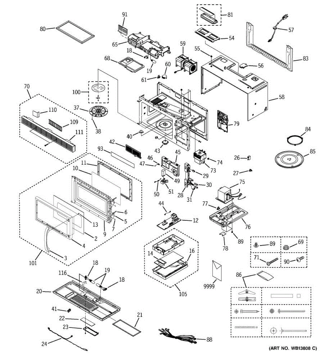 Fixes loud grinding or coffee grinder noise from microwave. Simple DIY repair with 2 screws and wire connectors. Located on top, typically takes under 30 minutes.