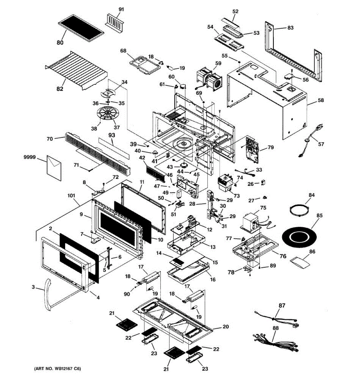 Fixes loud grinding or coffee grinder noise from microwave. Simple DIY repair with 2 screws and wire connectors. Located on top, typically takes under 30 minutes.