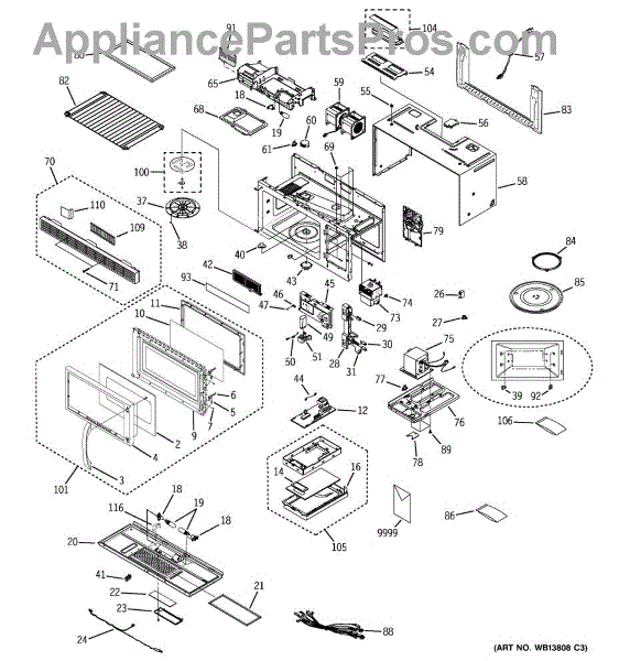 The Vent Grille is an OEM part for GE microwaves. It is located at the top of the microwave, allowing proper ventilation by covering the exhaust opening while protecting internal components from debris and dust.