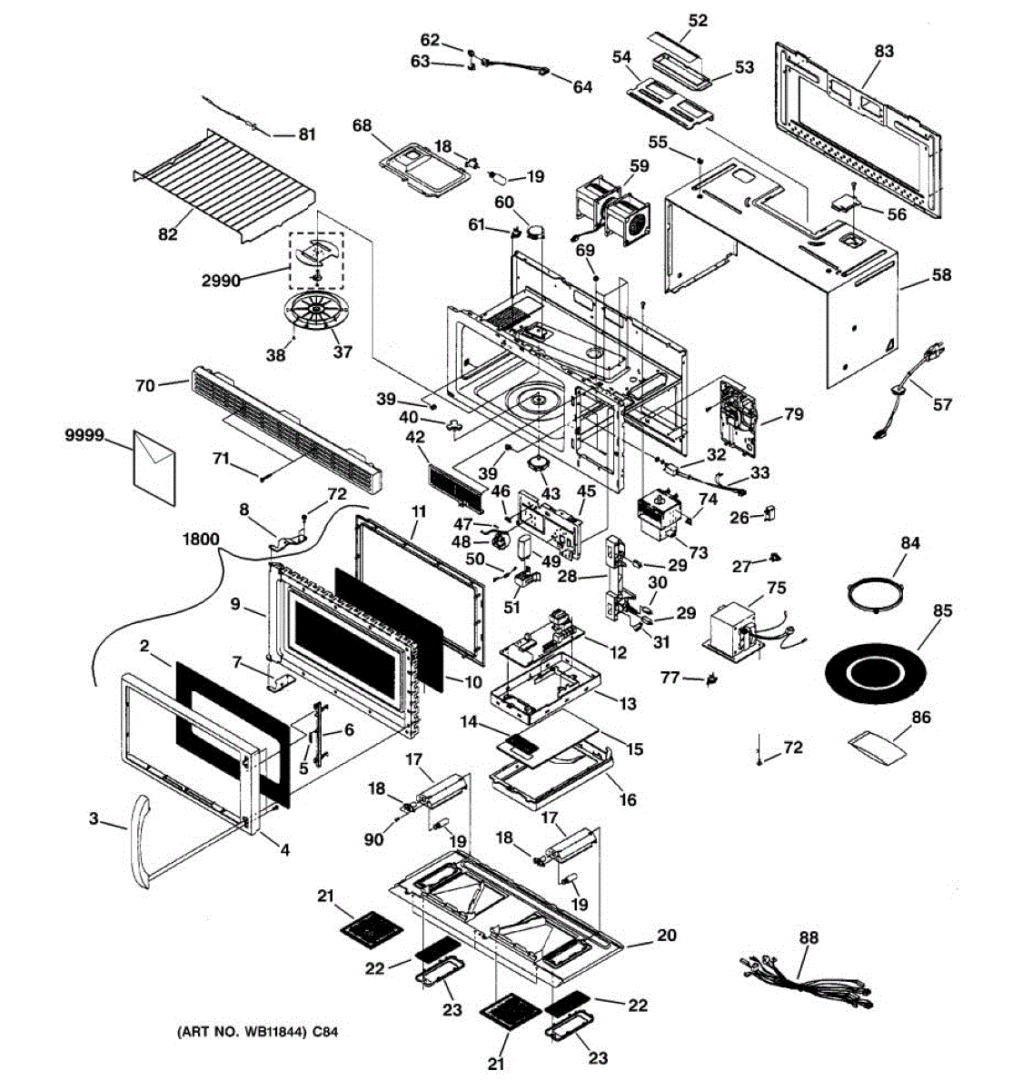 Wire harness for microwaves. Connects electrical components inside the unit. Replace if wires are damaged, frayed, or connections are loose or broken.