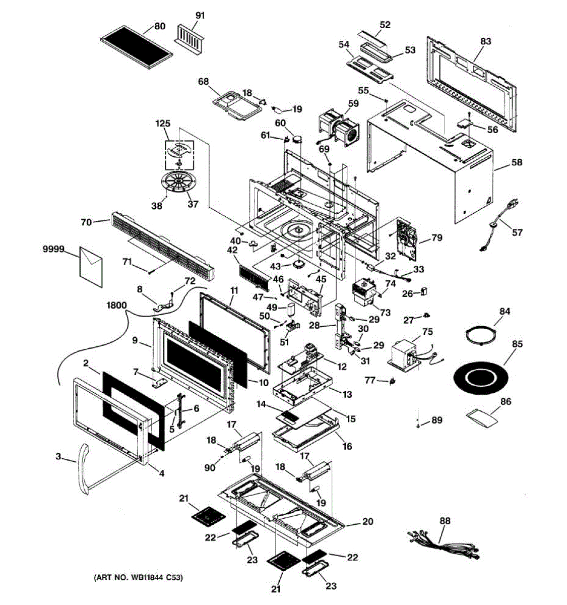 Upper duct assembly for microwave ventilation systems. Mounts inside the cabinet to direct air flow. Replace if cracked, damaged, or missing components.