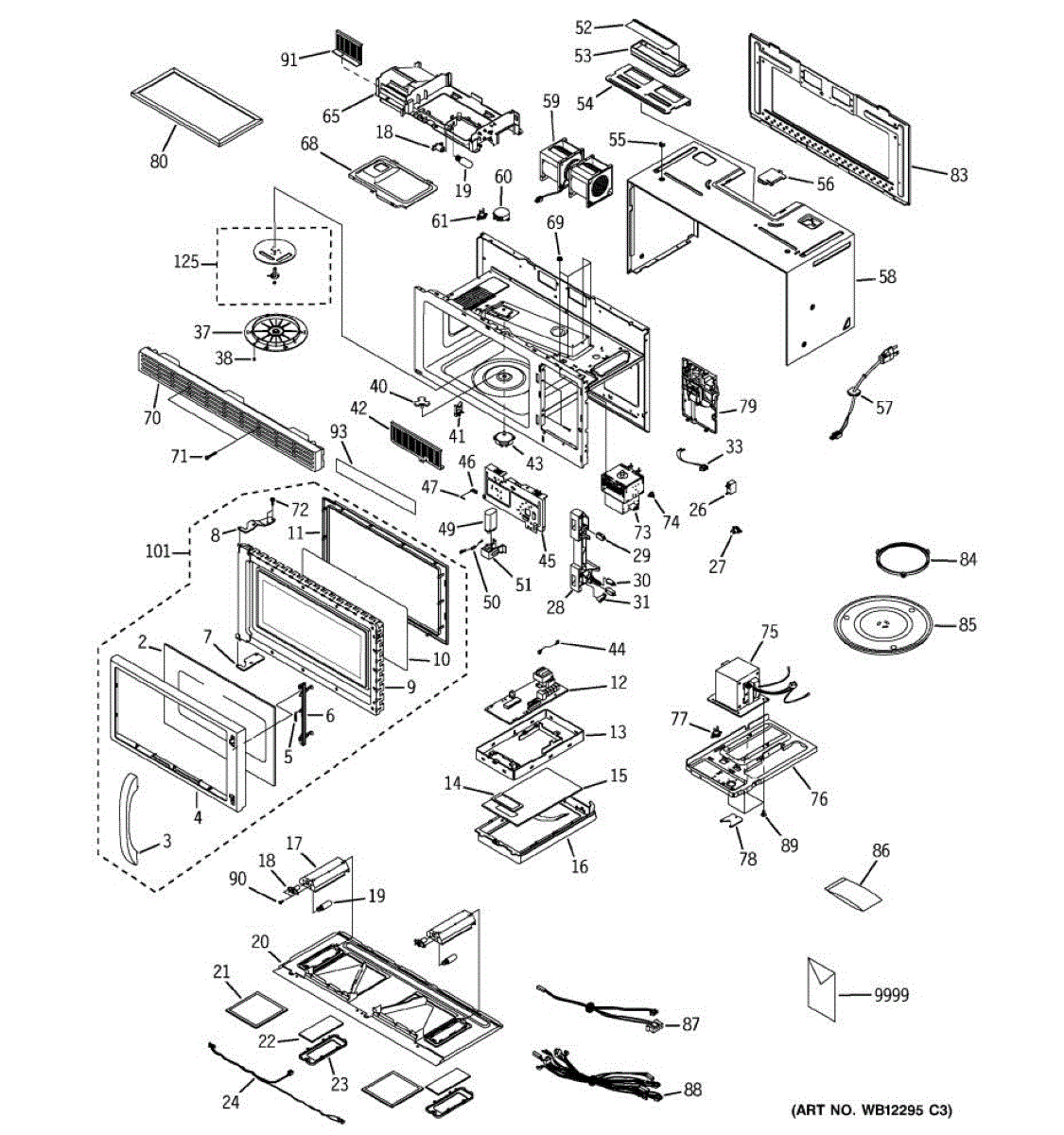 Fixes loud grinding or coffee grinder noise from microwave. Simple DIY repair with 2 screws and wire connectors. Located on top, typically takes under 30 minutes.