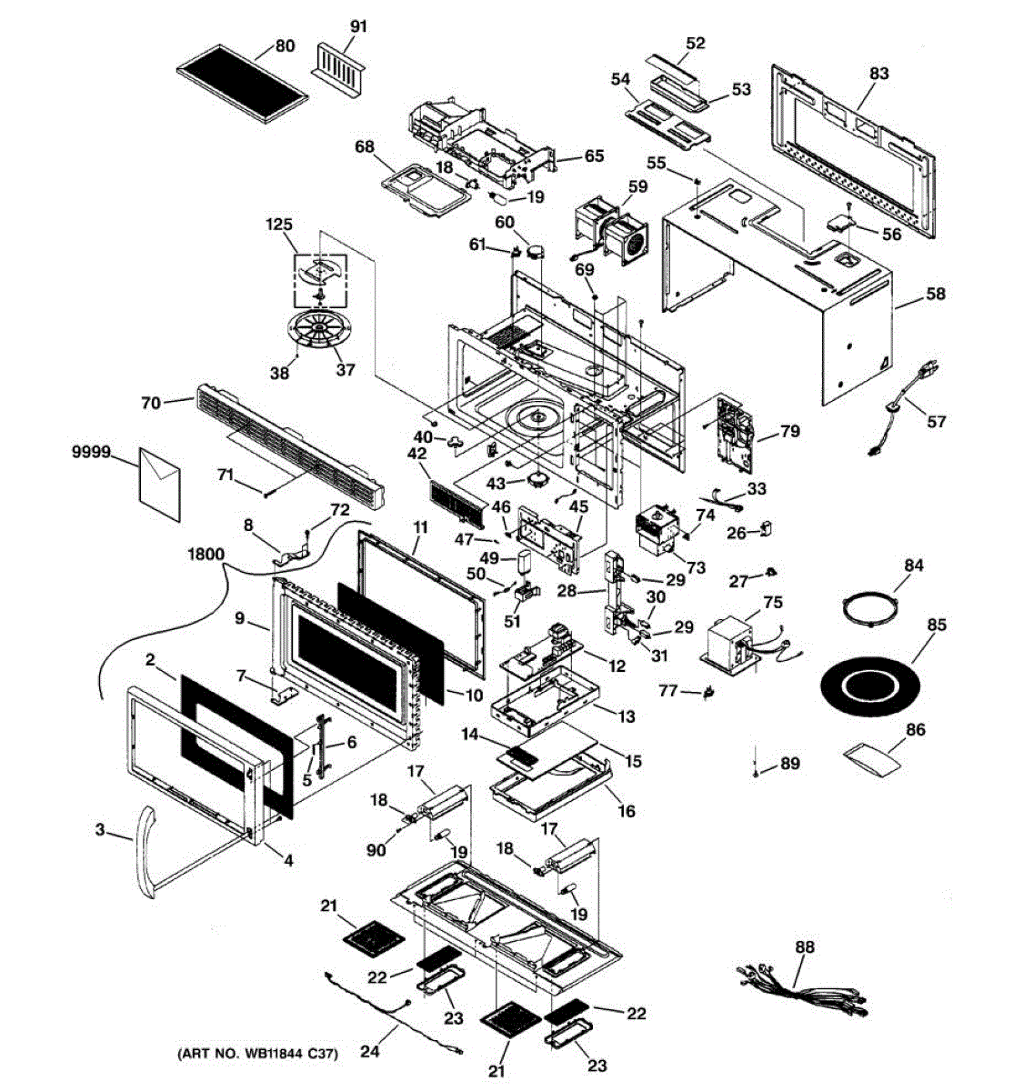 Upper duct assembly for microwave ventilation systems. Mounts inside the cabinet to direct air flow. Replace if cracked, damaged, or missing components.