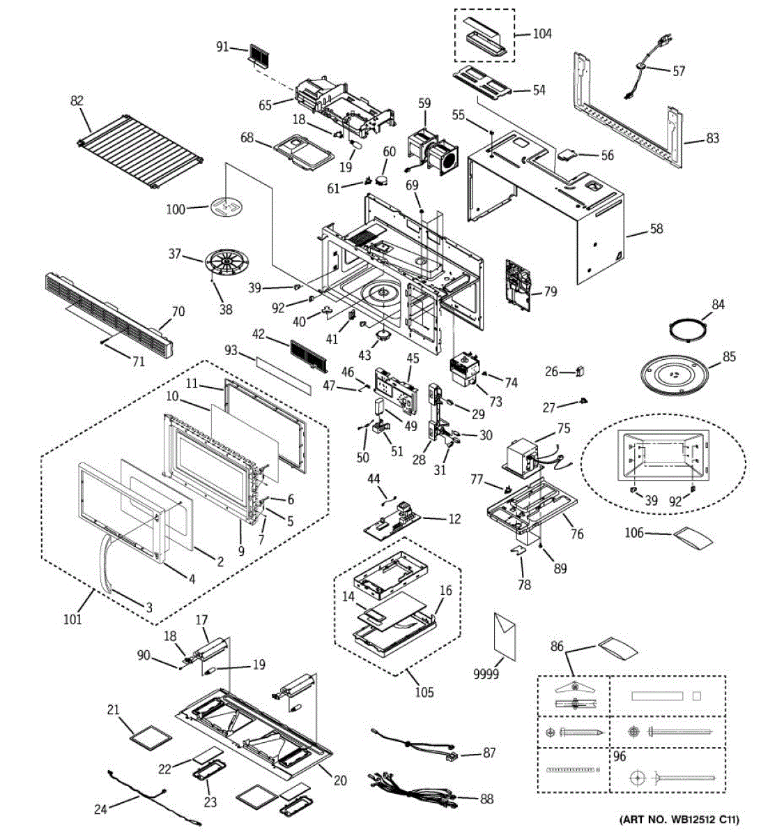 Fixes loud grinding or coffee grinder noise from microwave. Simple DIY repair with 2 screws and wire connectors. Located on top, typically takes under 30 minutes.