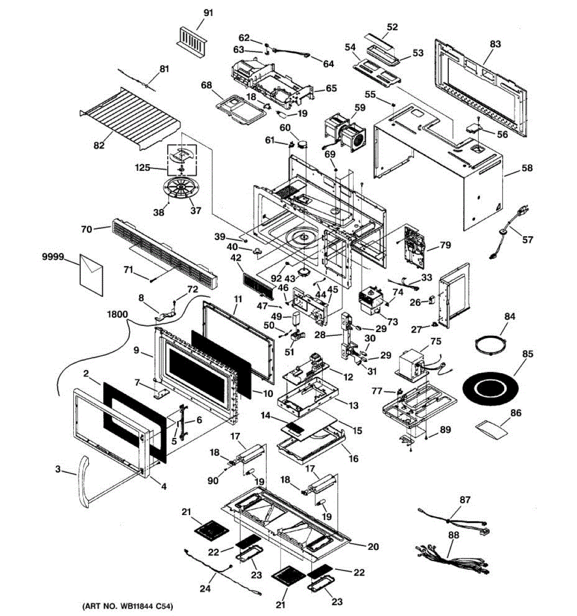Upper duct assembly for microwave ventilation systems. Mounts inside the cabinet to direct air flow. Replace if cracked, damaged, or missing components.