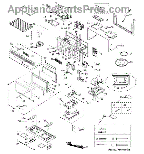 The Vent Grille is an OEM part for GE microwaves. It is located at the top of the microwave, allowing proper ventilation by covering the exhaust opening while protecting internal components from debris and dust.
