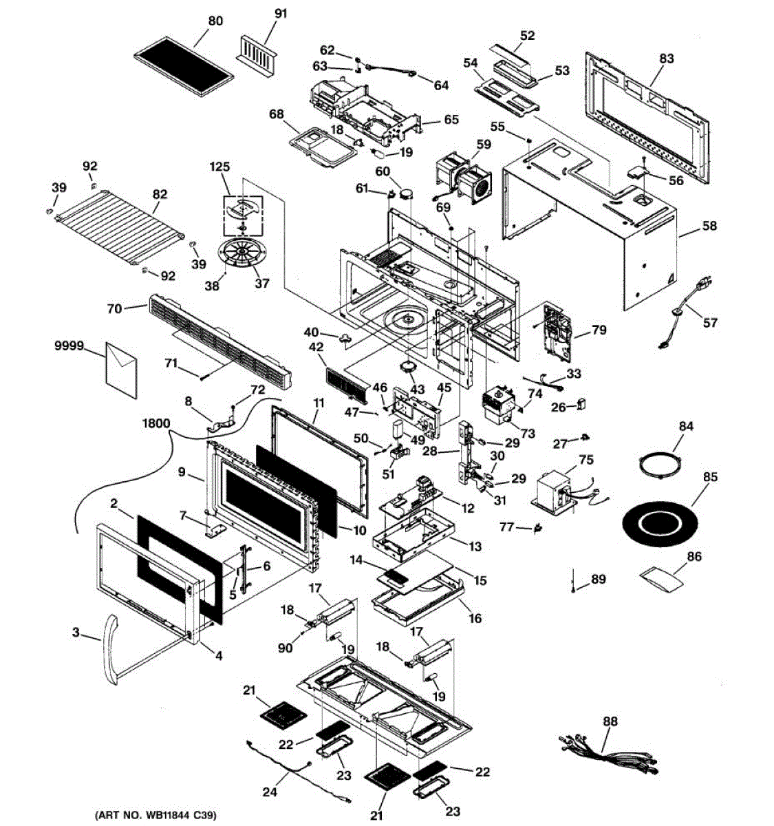 Wire harness for microwaves. Connects electrical components inside the unit. Replace if wires are damaged, frayed, or connections are loose or broken.