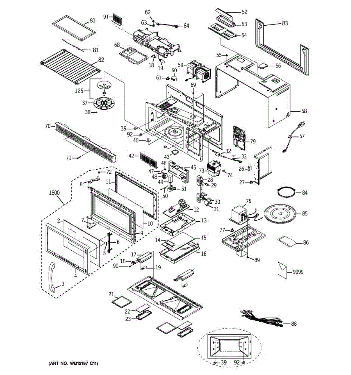 Wire harness for microwaves. Connects electrical components inside the unit. Replace if wires are damaged, frayed, or connections are loose or broken.