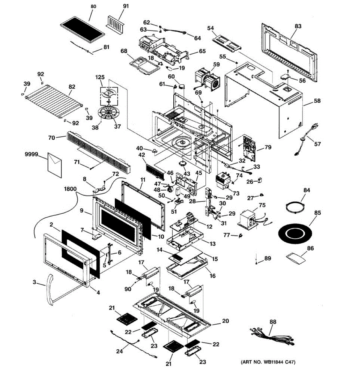 Wire harness for microwaves. Connects electrical components inside the unit. Replace if wires are damaged, frayed, or connections are loose or broken.