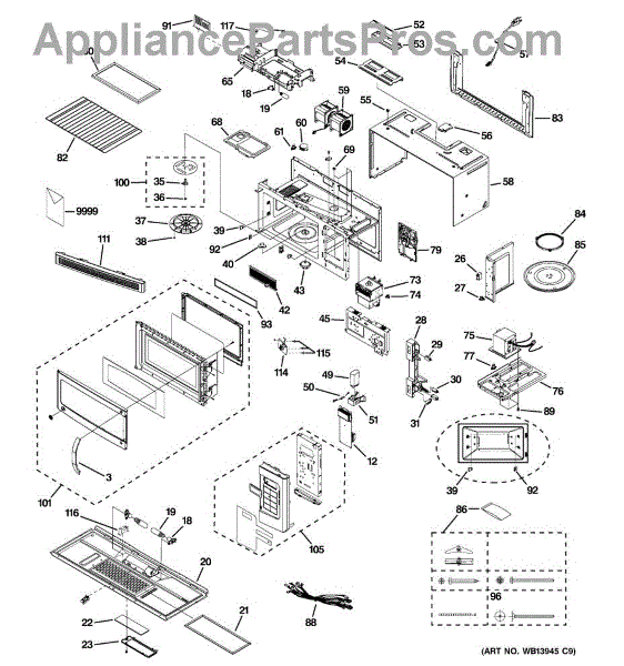 The Handle Assembly is an OEM replacement part for GE microwaves. This assembly includes a handle used for opening and closing the microwave door. A properly functioning handle assembly provides safe and easy access to the microwave interior for loading and unloading food items. Causes of a bad handle assembly can include damage from excess weight or stress on the handles during operation, cracks or breaks from normal usage over time, or issues affecting their usability. Symptoms of a bad handle assembly include:
