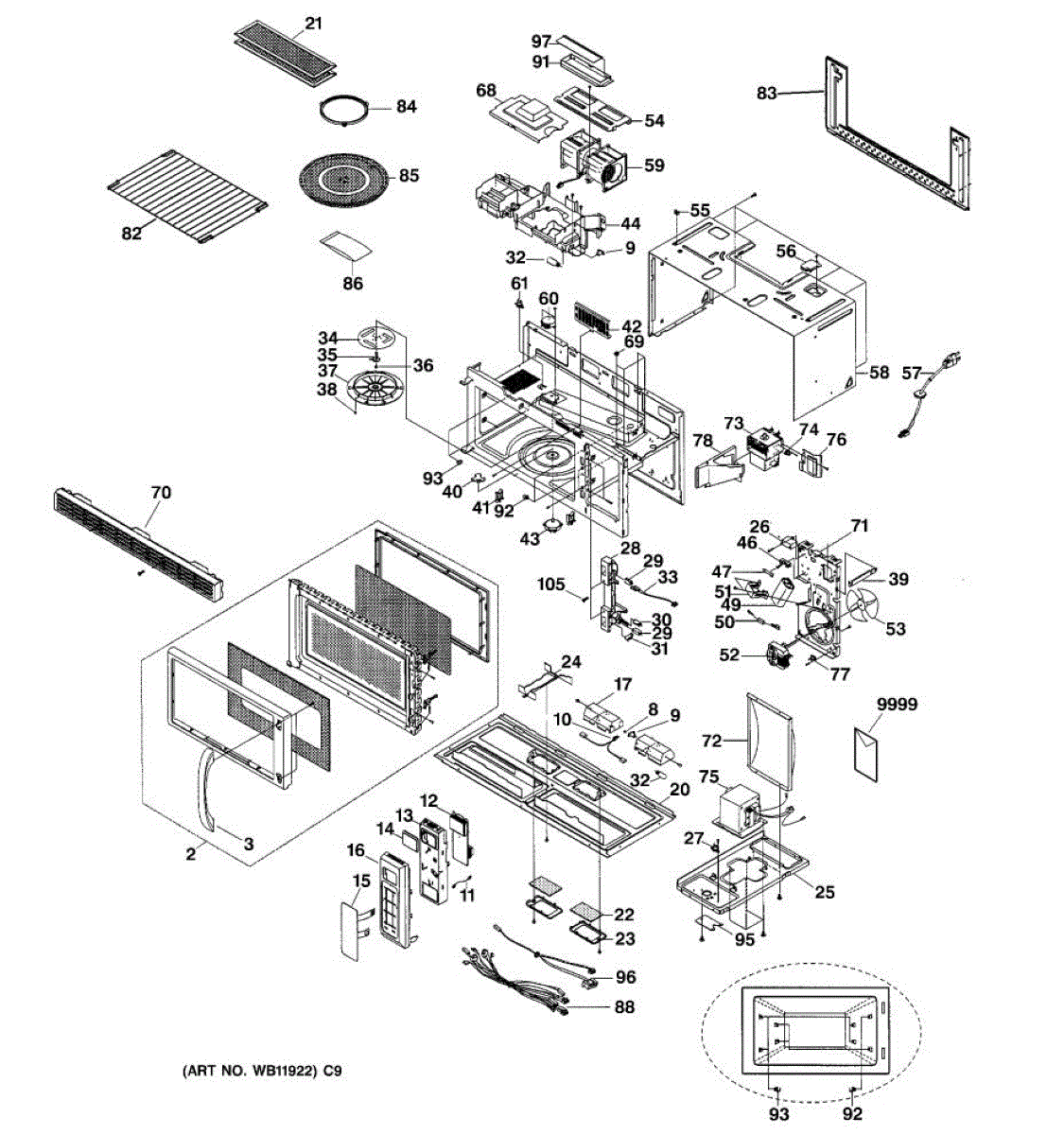 Fixes loud grinding or coffee grinder noise from microwave. Simple DIY repair with 2 screws and wire connectors. Located on top, typically takes under 30 minutes.