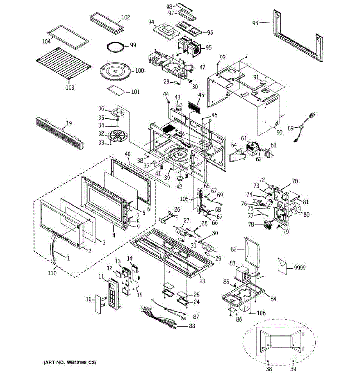 Fixes loud grinding or coffee grinder noise from microwave. Simple DIY repair with 2 screws and wire connectors. Located on top, typically takes under 30 minutes.