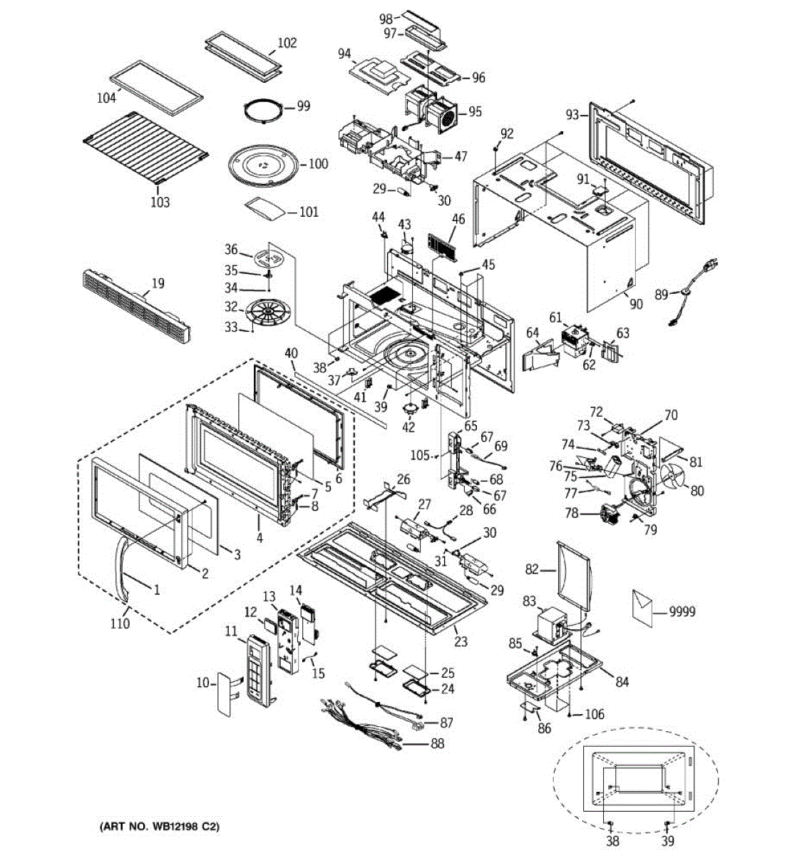 Fixes loud grinding or coffee grinder noise from microwave. Simple DIY repair with 2 screws and wire connectors. Located on top, typically takes under 30 minutes.