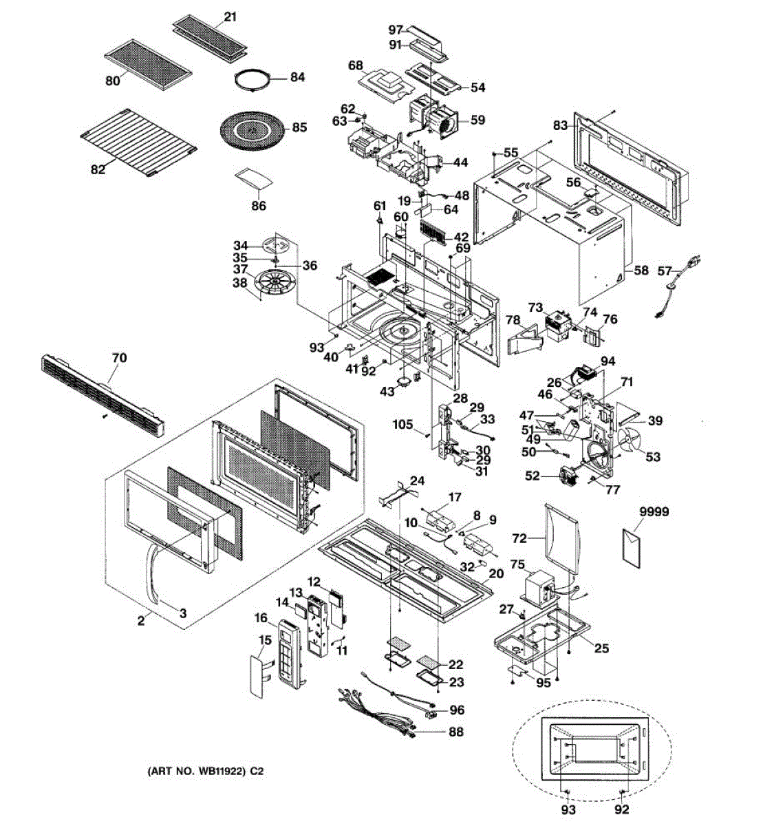 Fixes loud grinding or coffee grinder noise from microwave. Simple DIY repair with 2 screws and wire connectors. Located on top, typically takes under 30 minutes.