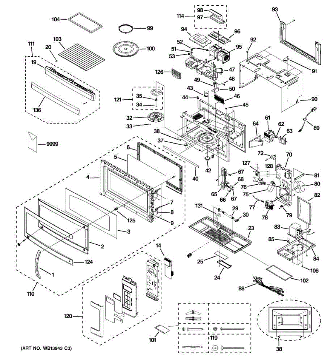 Complete microwave door assembly that replaces cracked, broken, or damaged doors. Includes door frame and glass. Restores proper seal and appearance.