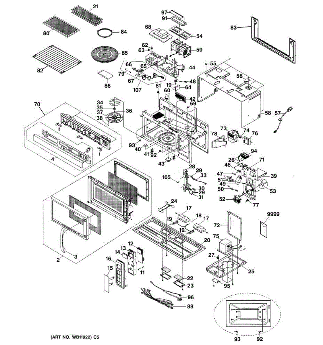 Fixes loud grinding or coffee grinder noise from microwave. Simple DIY repair with 2 screws and wire connectors. Located on top, typically takes under 30 minutes.