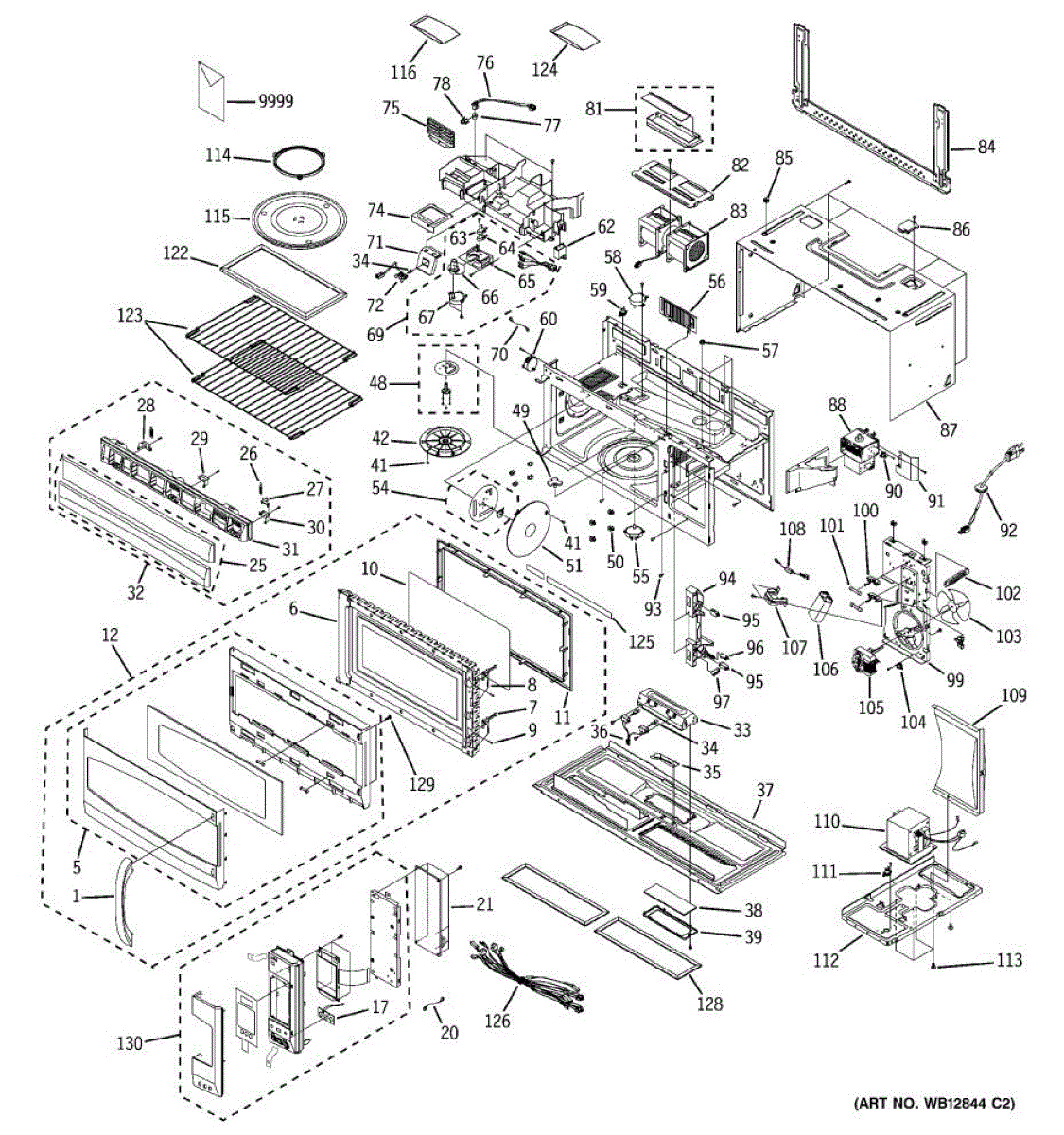 Wire harness assembly for microwave ovens. Connects internal electrical components. Replace if wires are frayed, damaged, or connections are loose.